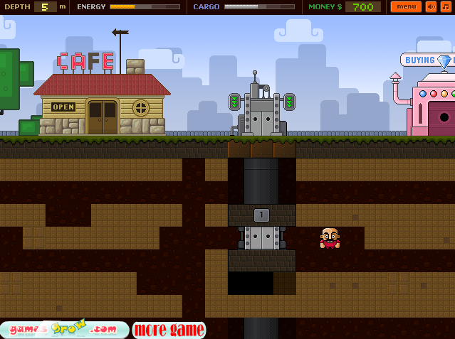 地上には3つのショップがあり鉱石を掘ってピンクのショップに売り体力回復やアップグレードを行い掘り進める。