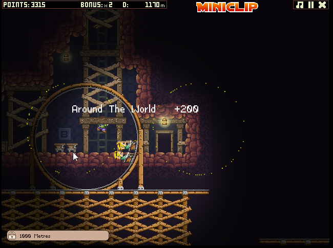自動で進むトロッコをジャンプでレールから落ちないように操作する。