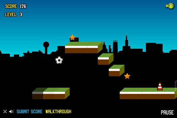 サッカーボールは自動で右に進み、左クリックでジャンプ。